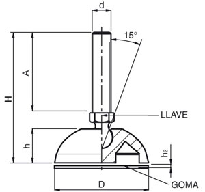 Base y espiga de poliamida reforzada. *Peso max. estático calculado con el eje vertical. Contratuerca disponible en el grupo accesorios para pies.