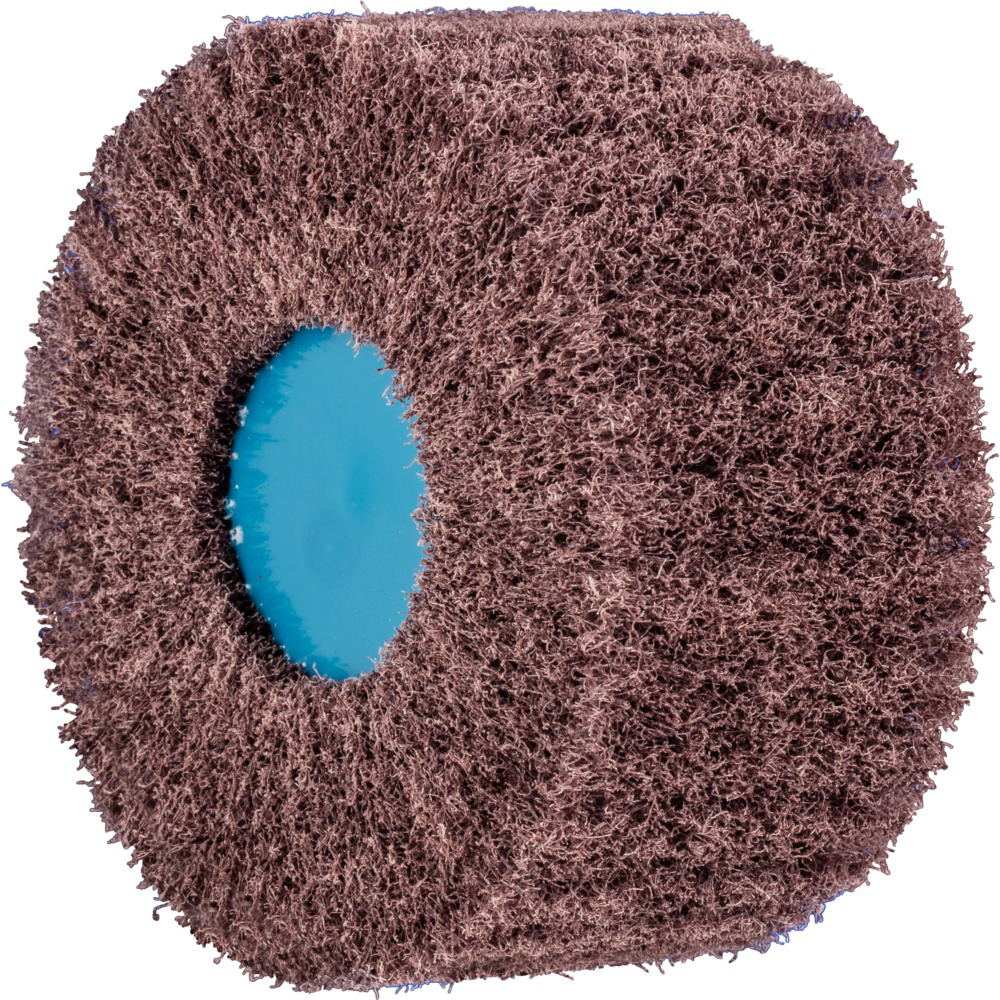 El vellón de amolar está dispuesto radialmente. Gracias a la disposición compacta de estas láminas se consigue una larga vida útil. La herramienta ha sido diseñada para el mecanizado de superficies de tamaño mediano en amoladoras angulares y amoladoras para soldadura en ángulo con regulación electrónica de revoluciones, y se puede montar directamente en el husillo de la máquina.