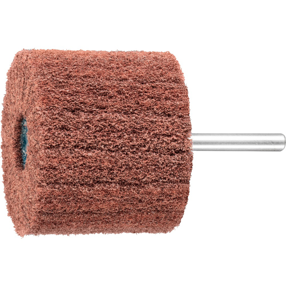 Láminas de vellón de amolar muy onduladas dispuestas axialmente alrededor de un núcleo. Esta estructura ondulada del vellón de amolar permite un acabado de superficie matizado y sin marcas de transición visibles. La herramienta ha sido diseñada para el mecanizado de superficies de tamaño mediano en amoladoras angulares y amoladoras para soldadura en ángulo con regulación electrónica de revoluciones, y se puede montar directamente en el husillo de la máquina.