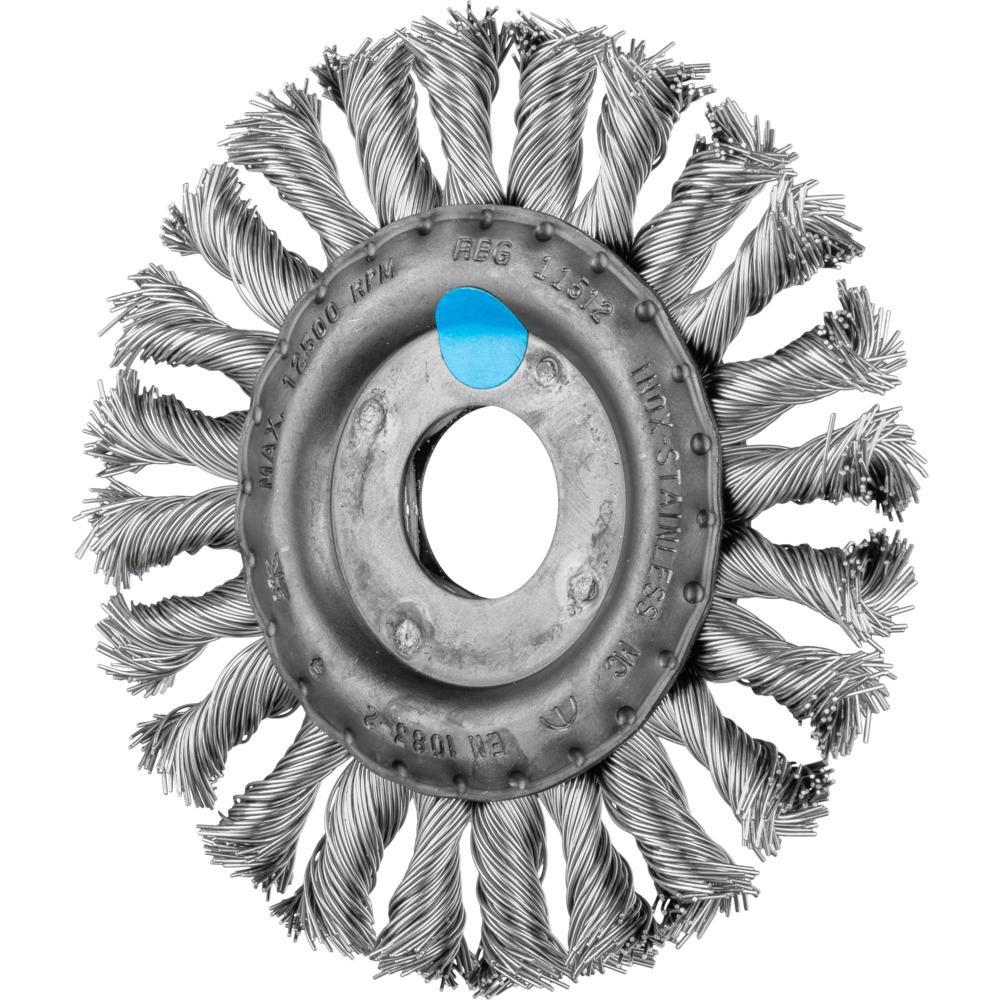 Carda muy agresiva. Adecuada para trabajos pesados en la construcción de metal como descascarillado, eliminación de óxido, limpieza de cordones de soldadura y eliminación de restos de pegamento.