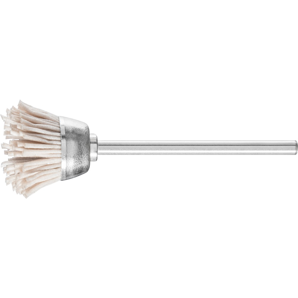 Adecuada para trabajos ligeros, como desbarbado, limpieza y pulido. Debido a su uso en la cara frontal trabajando toda la superficie del alambre es adecuada sobre todo para trabajos pesados en pequeñas áreas.