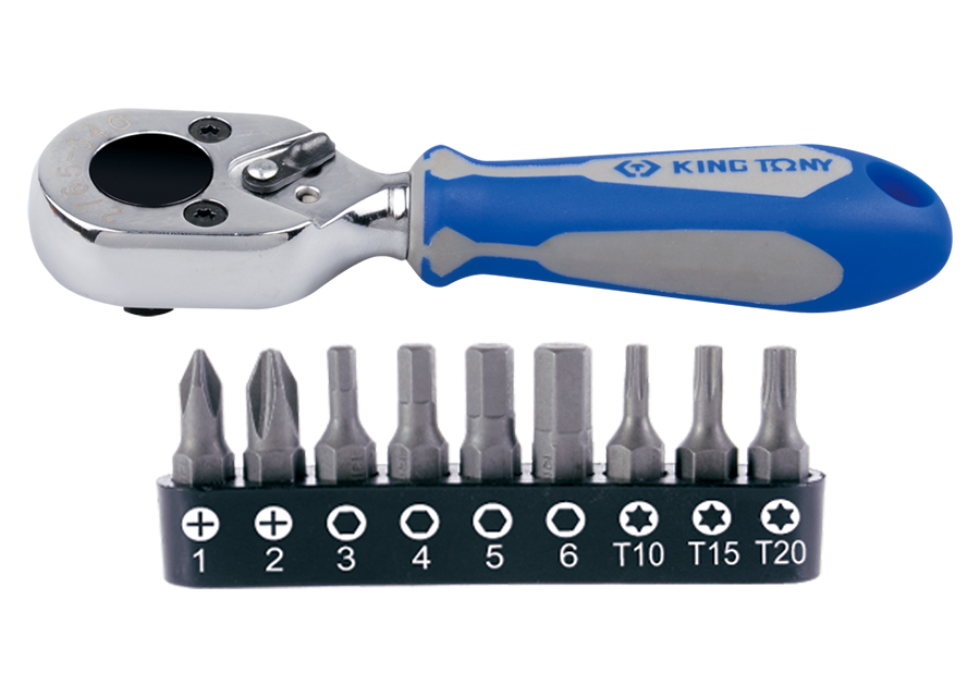 KING TONY Ref: 1001MR Mini carraca + 9 puntas en blister