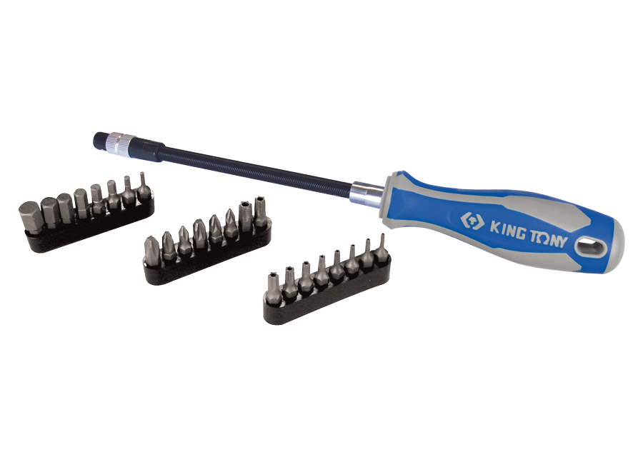 KING TONY Ref: 1025CQ Destornillador flexible con porta puntas magnético 1/4" + puntas