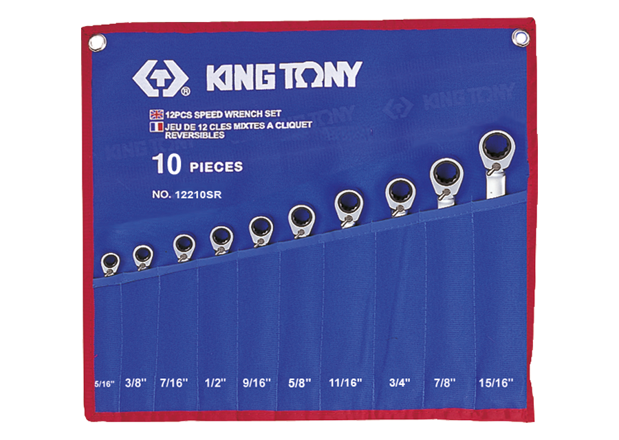 KING TONY Ref: 12210SR Estuche Llaves Combinadas con Carraca Reversibles - 10 Pzas