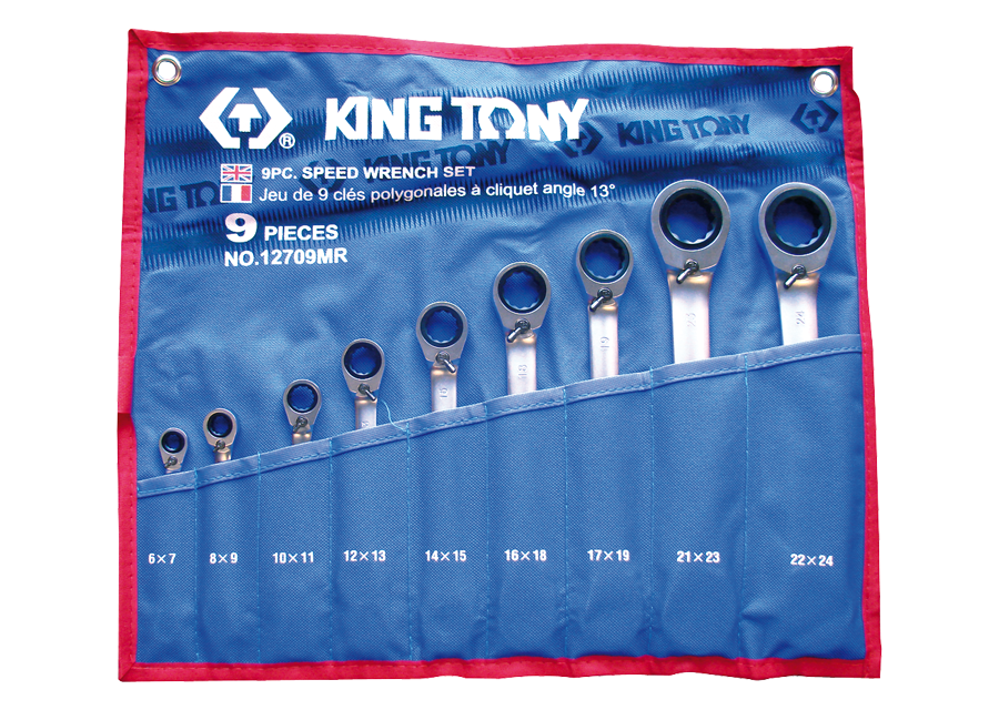 KING TONY Ref: 12709MR Juego de Llaves de estrella con Carraca 6x7-22x24mm - 9 Pzas