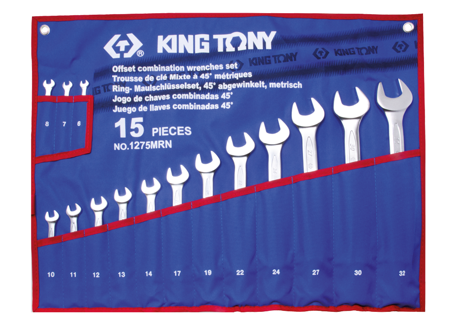 Estuche de tela de llaves combinadas a 45º en métrico - 15 piezas