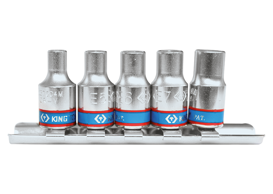 • KING TONY Ref: 2105PR Juego de 5 Vasos Torx E4 - E5 - E6 - E7 - E8