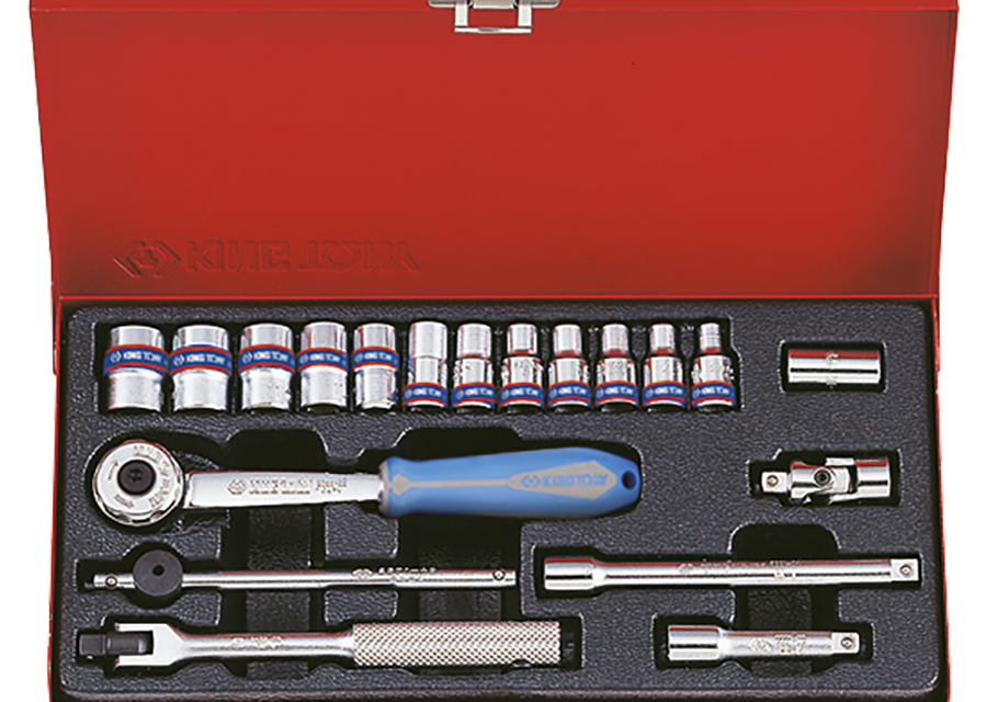 KING TONY Ref: 2520MR01 Caja de Vasos y accesorios 1/4" - 19 Pzas