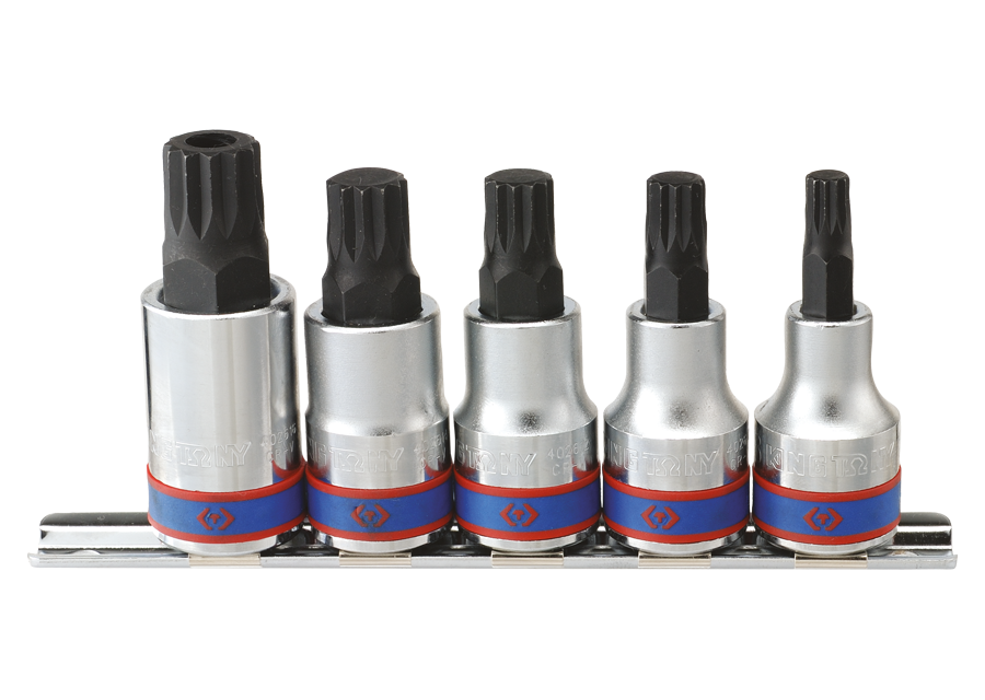 • KING TONY Ref: 4105PR Juego Vasos 1/2" sobre rail SPLINE M8-M16 - 5Pzas