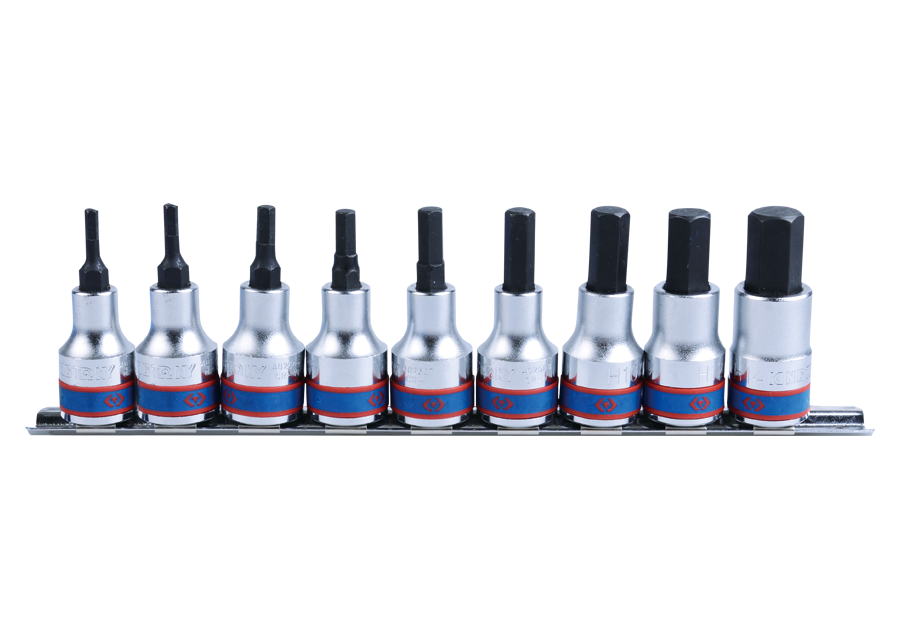 • KING TONY Ref: 4110PR10 Juego Vasos 1/2" con punta hexagonal sobre rail - 9 piezas