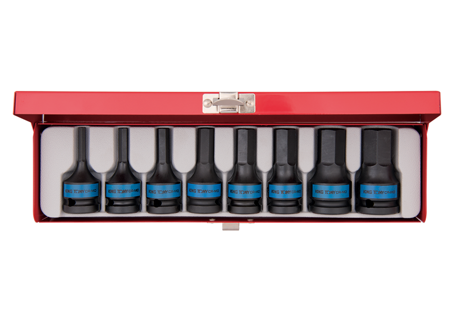 KING TONY Ref: 4418MP Cofre de vasos con punta 1/2 de impacto hexagonal 8 piezas