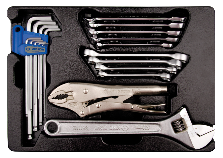 KING TONY Ref: 991120MR Termoformado llaves Allen, racores, inglesa y mordaza 20 pzas.