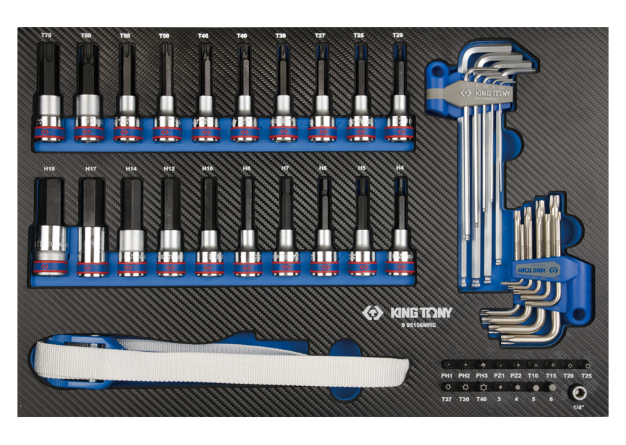 KING TONY Ref: 995156MRE Módulo espuma + PP 56 piezas vasos 1/2" y accesorios