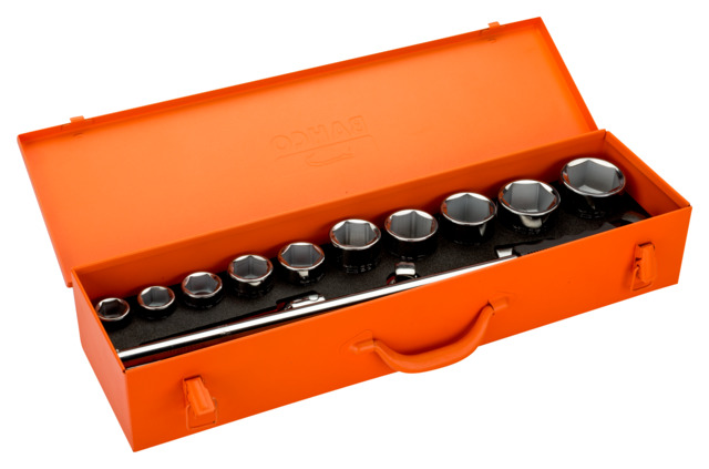 Juego de vasos con cuadradillo de 3/4 con perfil hexagonal métrico y cabeza de carraca redonda/cabeza corrediza (15 unidades/maletín)
