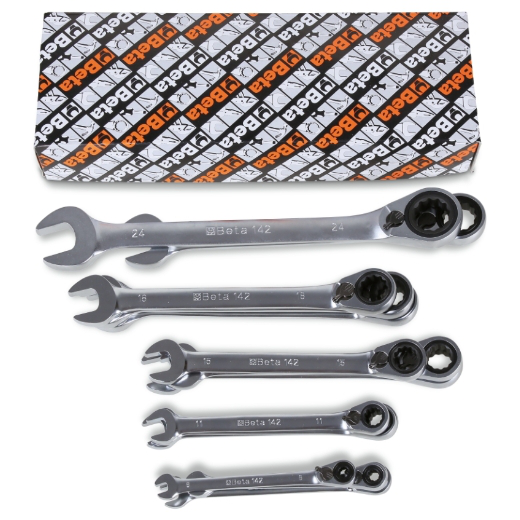 • juego de 15 llaves combinadas con carraca reversible (art. 142) :