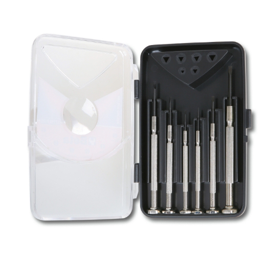 • juego de 6 microdestornilladores para tornillos sin cabeza con ranura (art. 1229LP) en caja :
