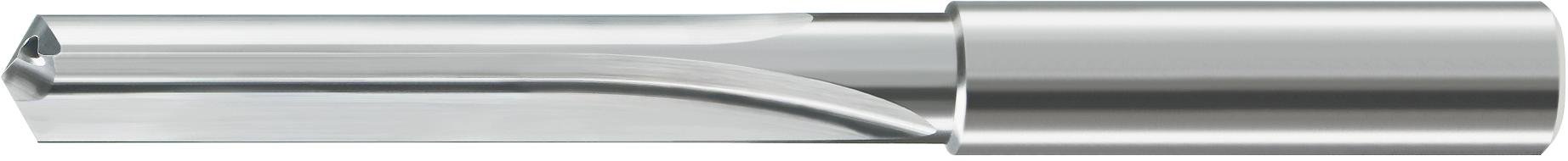 Broca en MD con ranura recta para el taladrado de materiales de viruta corta, como por ejemplo: fundición, fundición gris, fundición de acero, fundición nodular, aleaciones de aluminio con alto porcentaje en silicio. Para la elaboración de agujeros con extremada precisión de alienación (desvío mínimo). Ventajas: Muy buen autocentraje, tolerancias estrechas de diámetro, superficies muy buenas, altas velocidades de corte, alta productividad. Condiciones, indicaciones para la aplicación: Máquinas de alta potencia. Con husillos de poco juego (edad). Alienación precisa de amarre herramienta y pieza. Salto máximo de concentricidad de la herramienta sujeta de máx. 0,02 mm. Recomendamos el uso de conos hidráulicos o térmicos.