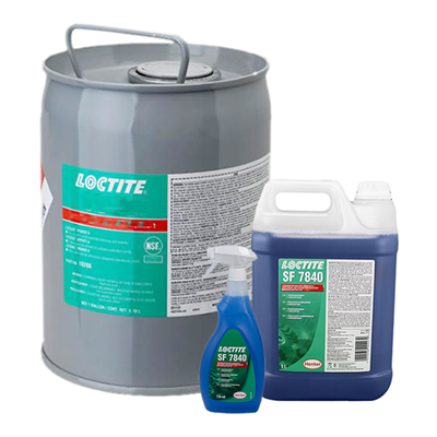 LOCTITE SF 7840 es un limpiador y desengrasante de piezas biodegradable de uso general que se puede diluir con agua.