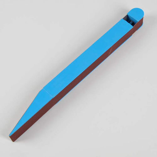 Los soportes para cintas abrasivas son ayudantes pequeños pero muy prácticos. Fabricados en polipropileno robusto anti-golpe, incluso se pueden utilizar en contacto con los solventes. La punta se puede remodelar con el muelle. El muelle integrado mantiene firmemente la banda en tensión. Cintas abrasivas: corindón normal adherido sobre tela. Esta cintas abrasivas y sus soportes se fabrican en 3 distintas anchuras .