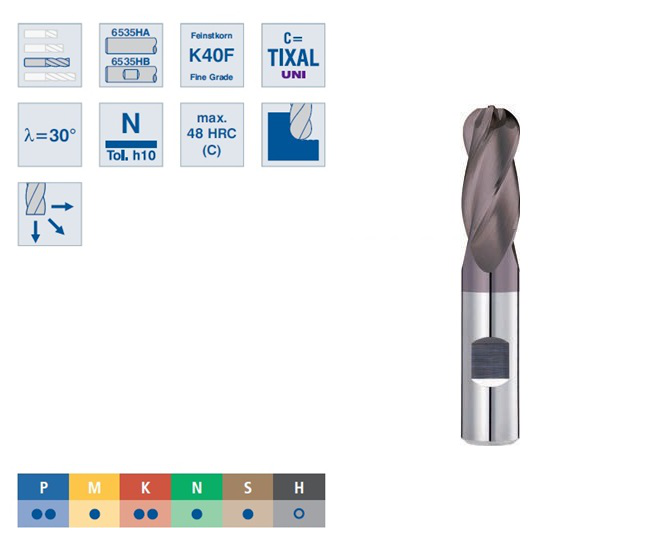 Fresa MD Esferica 4 Labios HB Recubrimiento T-Uni
