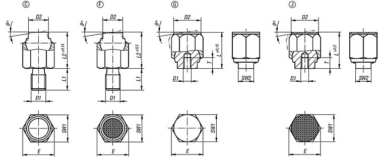 Indicación: Los soportes con bola oscilante sirven como topes, apoyos y piezas de presión en la construcción de portapiezas. La superficie de apoyo vuelve a colocarse en la posición de salida después de la descarga de tracción. Bola asegurada contra torsiones.