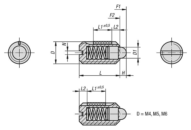 Piezas presión, f. muelle estándar.LONG-LOK. D=M6