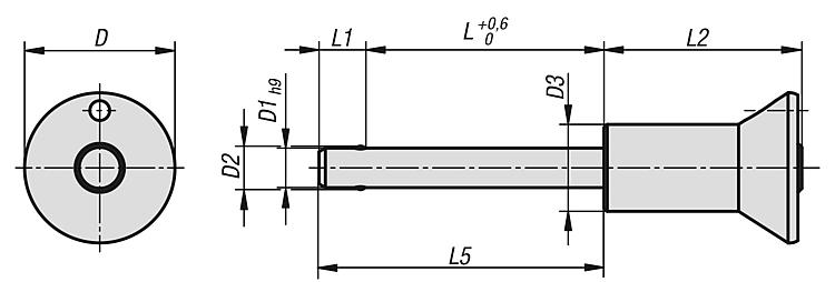 Indicación: Los pernos de bloqueo de bola sirven para fijar y unir piezas de trabajo y otras piezas de forma rápida y sencilla. Presionando el botón pulsador, se pueden desbloquear las dos bolas y, de este modo, insertar las piezas que se vayan a conectar. Al soltar el botón pulsador, las bolas bloquean la conexión de forma segura y permanente.