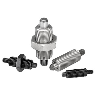 Indicación: Los pernos de bloqueo se aplican para impedir el cambio de la posición de bloqueo por fuerzas transversales. El perno solo puede colocarse en otra posición de bloqueo una vez que se haya desacoplado. En el tornillo de sujeción sobresaliente se pueden montar empuñaduras especiales. Además, ofrece un modo de accionamiento para el perno de bloqueo, p. ej. de forma automática (controlado por programa) con ayuda de un cilindro neumático, o permite un manejo a distancia a través de cables Bowden. Para enroscar el perno de bloqueo, se puede suministrar una arandela roscada. Esta se coloca en el casquillo roscado de modo que los pernos de arrastre encajen en la ranura.