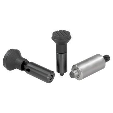 Indicación: Los pernos de bloqueo se aplican para impedir el cambio de la posición de bloqueo por fuerzas transversales. El perno solo puede colocarse en otra posición de bloqueo una vez que se haya desacoplado manualmente. Para evitar que la clavija de bloqueo rebote cuando sea necesario desacoplarla tras un periodo de tiempo prolongado, se utilizará la forma M. En el tornillo de sujeción sobresaliente de la forma N se pueden montar empuñaduras especiales. Además, ofrece un modo de accionamiento para el perno de bloqueo, p. ej. de forma automática (controlado por programa) con ayuda de un cilindro neumático, o permite un manejo a distancia a través de cables Bowden. Para soldar el perno de bloqueo, recomendamos soldeo en atmósfera protectora con un equipo de soldadura TIG.