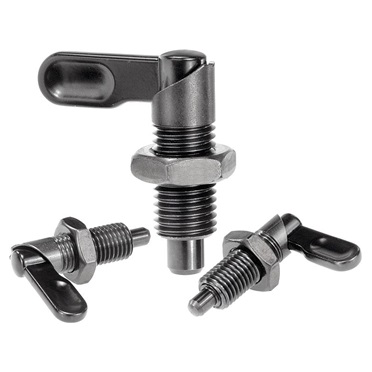 Indicación: Los pasadores de bloqueo se utilizan cuando la clavija de bloqueo no debe sobresalir por algún tiempo. Si se gira el pestillo 180°, se recoge la clavija de bloqueo. Una muesca de cerrojo hace que el pestillo se mantenga en esta posición.