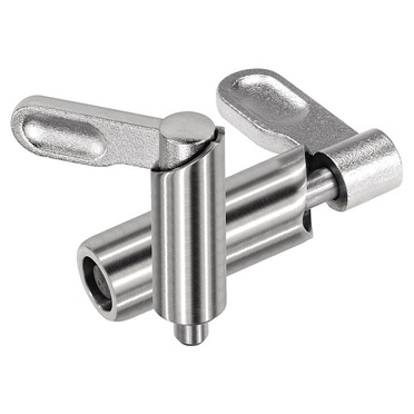 Indicación: Los pasadores de bloqueo se utilizan cuando la clavija de bloqueo no debe sobresalir por algún tiempo. Si se gira el pestillo 180°, se recoge la clavija de bloqueo. Una muesca de cerrojo hace que el pestillo se mantenga en esta posición. Para soldar el pasador de bloqueo, recomendamos el soldeo en atmósfera protectora con un equipo de soldadura TIG.