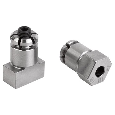 Indicación: Con ayuda de los bulones de posicionamiento extensibles, se pueden posicionar placas de retícula, por ejemplo, sobre mesas de máquinas con ranuras en T (ver imagen). Las placas que se vayan a posicionar deben presentar dos perforaciones adecuadas para la espiga extensible. El tornillo de ajuste tiene un hexágono interior continuo y se puede manejar, por tanto, por los dos lados.