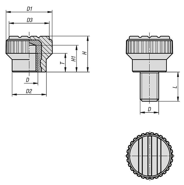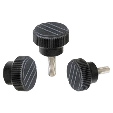 Botones moleteados inox. Rosca exterior. D=M6 L=15