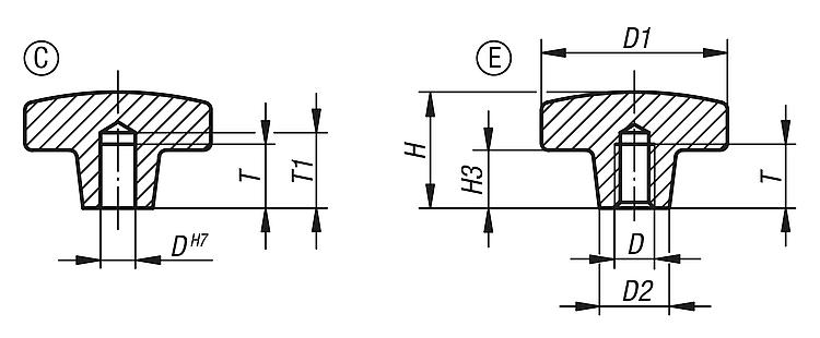 Empuñaduras cruz DIN 6335. Negro. Forma E. D=M8