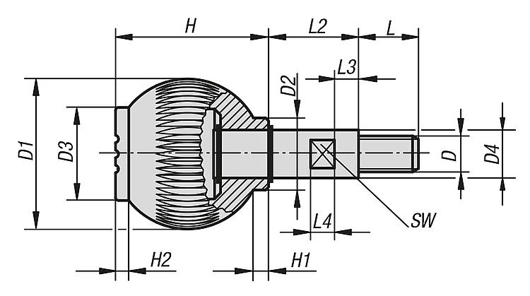 Bolas empuñadura giratorias, acero, RAL 7021. L=20