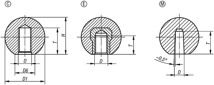 Botones esféricos DIN 319, forma E. D=M6 D1=25