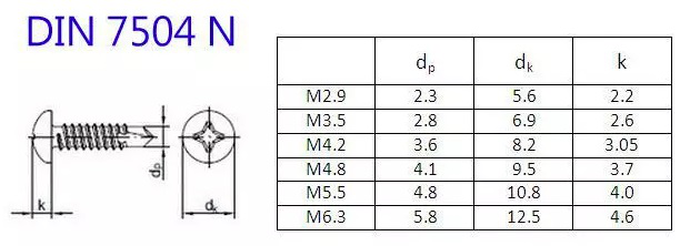 El tornillo 7504 N es un tornillo de cabeza alomada y huella tanto cuadrada como de cruz o Philips. Su cuerpo es de forma cilíndrica y está todo roscado, menos su terminación, que es de punta broca. Esto hace que sea autotaladrante. No dispone de cuello. Los hay sobre todo zincados. Están indicados para metal.
