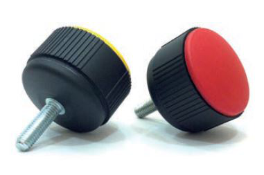 • Espiga de acero tratado, roscada. PA Poliamida negra reforzada. Tapones en color negro, naranja, rojo, azul, amarillo y gris, similares al RAL indicado. Suministrado con el tapón sin montar.