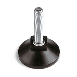 Termoplástico y espiga de acero tratado. Montaje con destornillador en cruz por la base. Peso máximo estático calculado sobre eje vertical. Contratuerca disponible en el grupo accesorios para pies.