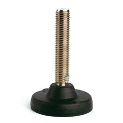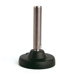 Base de poliamida reforzada y espiga en acero cincado o en acero inoxidable (AISI 304). *Peso max. estático calculado con el eje vertical. Utilizando un martillo se pueden abrir los agujeros pre-marcados y fijar el pie al suelo. Contratuerca disponible en el grupo accesorios para pies.
