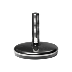 Material de la base: Núcleo de poliamida reforzada revestimiento externo de acero inoxidable AISI 304. Material antivibración de PVC blando 68 shore de color negro. El material antivibración comoldeado permite una adherencia perfecta con la base de acero. Por consiguiente, la ausencia de cavidades internas logra que el pie se pueda esterilizar perfectamente. *Peso máx. estático (eje vertical). Contratuerca disponible en el grupo accesorios para pies.