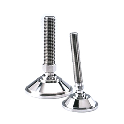 Acero inoxidable (AISI 316 L). *Peso max. estático calculado con el eje vertical.Para mayor higiene puede montarse la Junta hermética de goma entre la espiga y la base del pie. Pedirla por separado. Se sirve sin montar. Contratuerca disponible en el grupo accesorios para pies. Disponible también la goma (Nitrile) antideslizante autoadhesiva de 3 mm para la base del pie. Se suministra como accesorio sin montar: