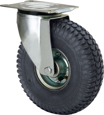 • Ruedas color negro, con llanta de poliamix y cubierta neumática de 4 y 6 lonas especialmente indicadas para soportar cargas hasta 220 Kg.