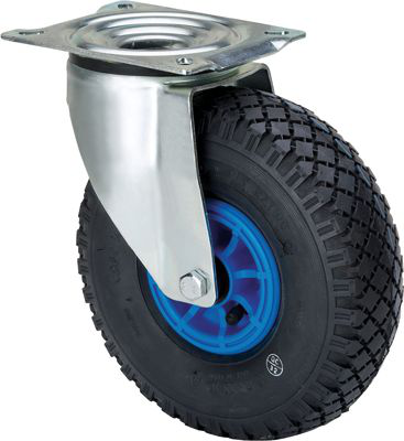 • Ruedas color negro, con llanta de poliamix y cubierta neumática de 4 lonas especialmente indicadas para soportar cargas hasta 175 Kg.