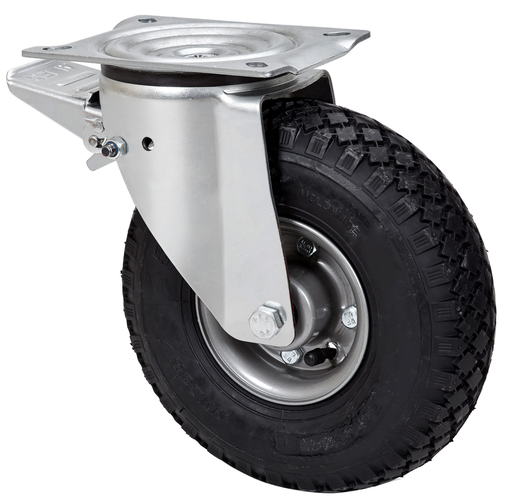 • Ruedas color negro, con llanta de poliamix y cubierta neumática de 4 y 6 lonas especialmente indicadas para soportar cargas hasta 220 Kg.