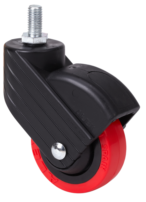 • Ruedas de poliuretano inyectado rojo, especialmente indicada para soportar altas cargas hasta 30 Kg.