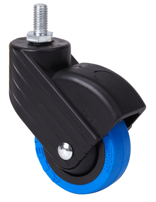 • Ruedas de poliuretano inyectado azul, especialmente indicada para soportar altas cargas hasta 30 Kg.