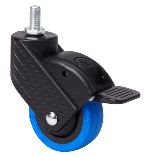 • Ruedas de poliuretano inyectado azul, especialmente indicada para soportar altas cargas hasta 30 Kg.