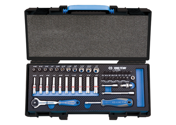 Cofre de vasos 1/4" en pulgadas con accesorios (1)