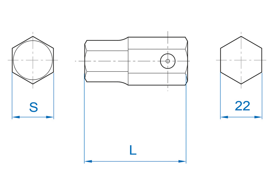 Punta de impacto hexagonal en pulgadas